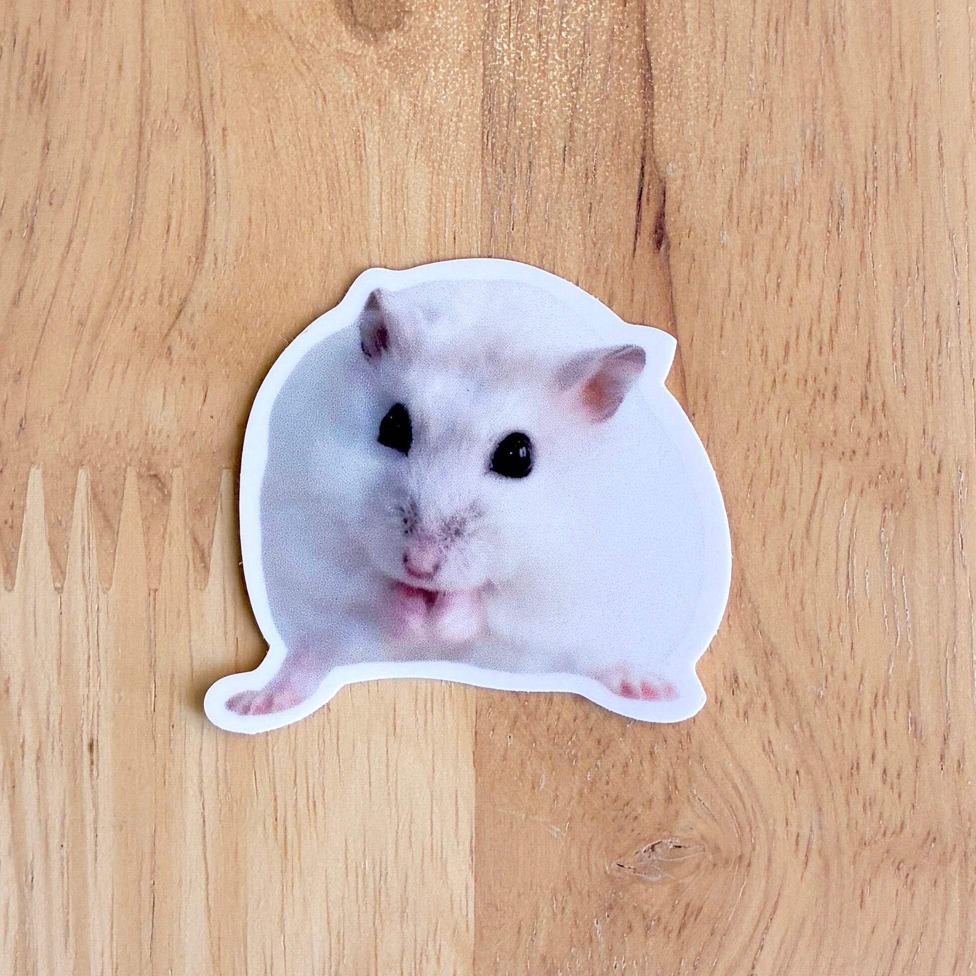 ラブリーハムスター福のステッカー。スマホカバーに挟んだり、小物に貼ったりするとかわいいです。横4.5cm×縦4cmサイズ。