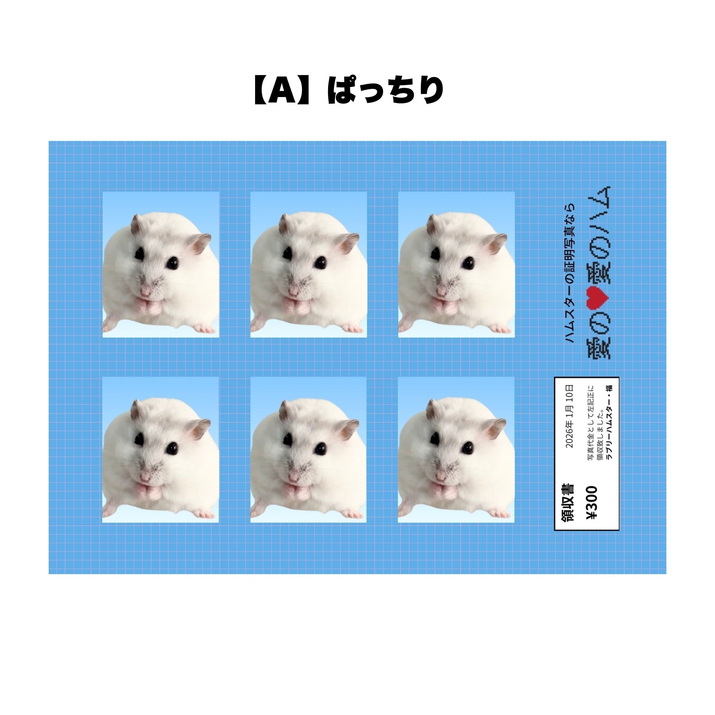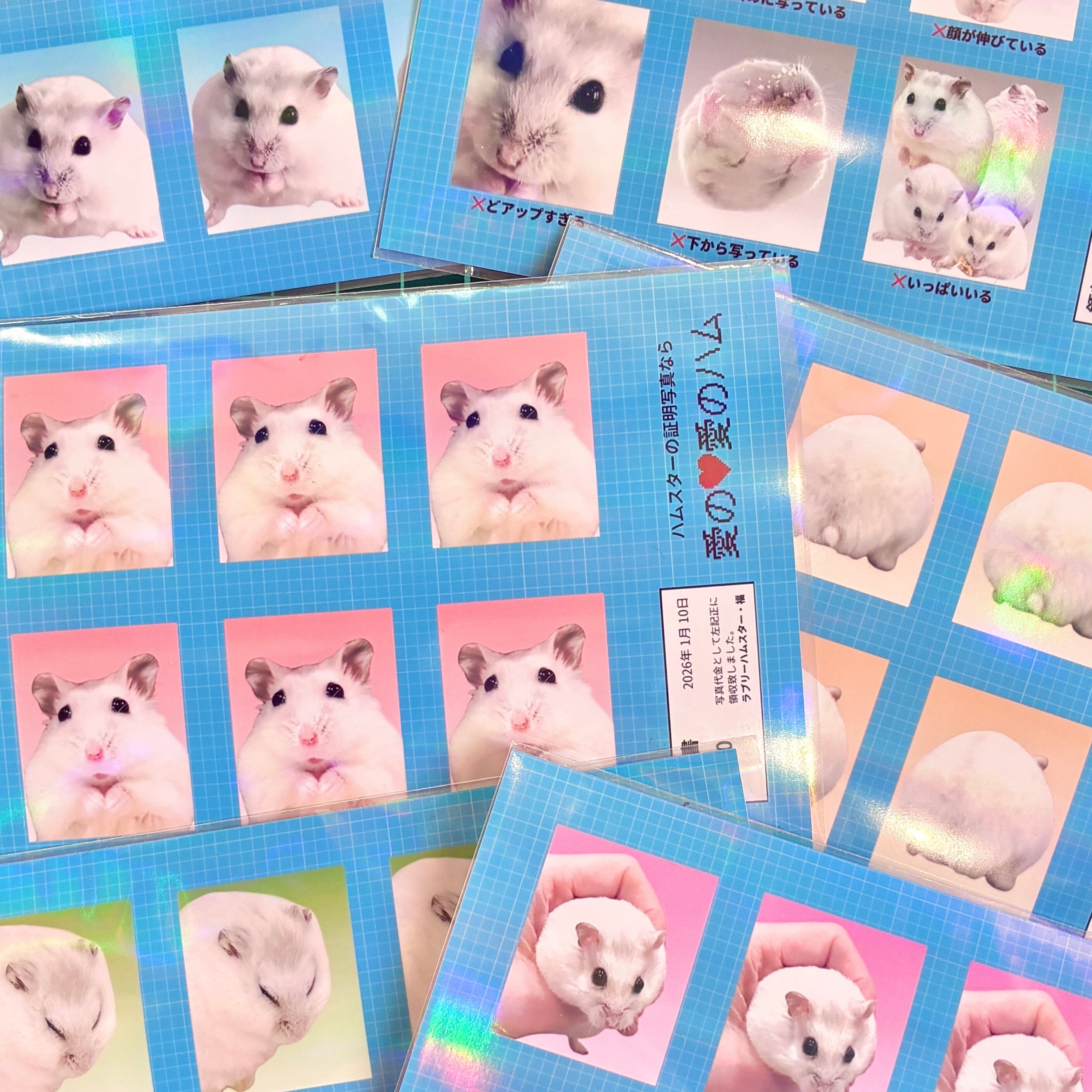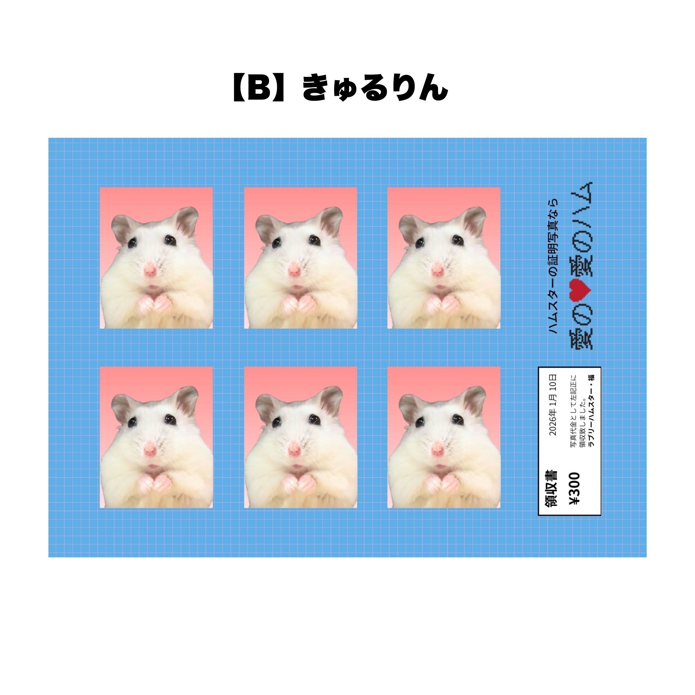 ラブリーハムスター福の証明写真風シールです。全6種類あります。カットするもよし、そのまま貼るもよし。L判サイズ。