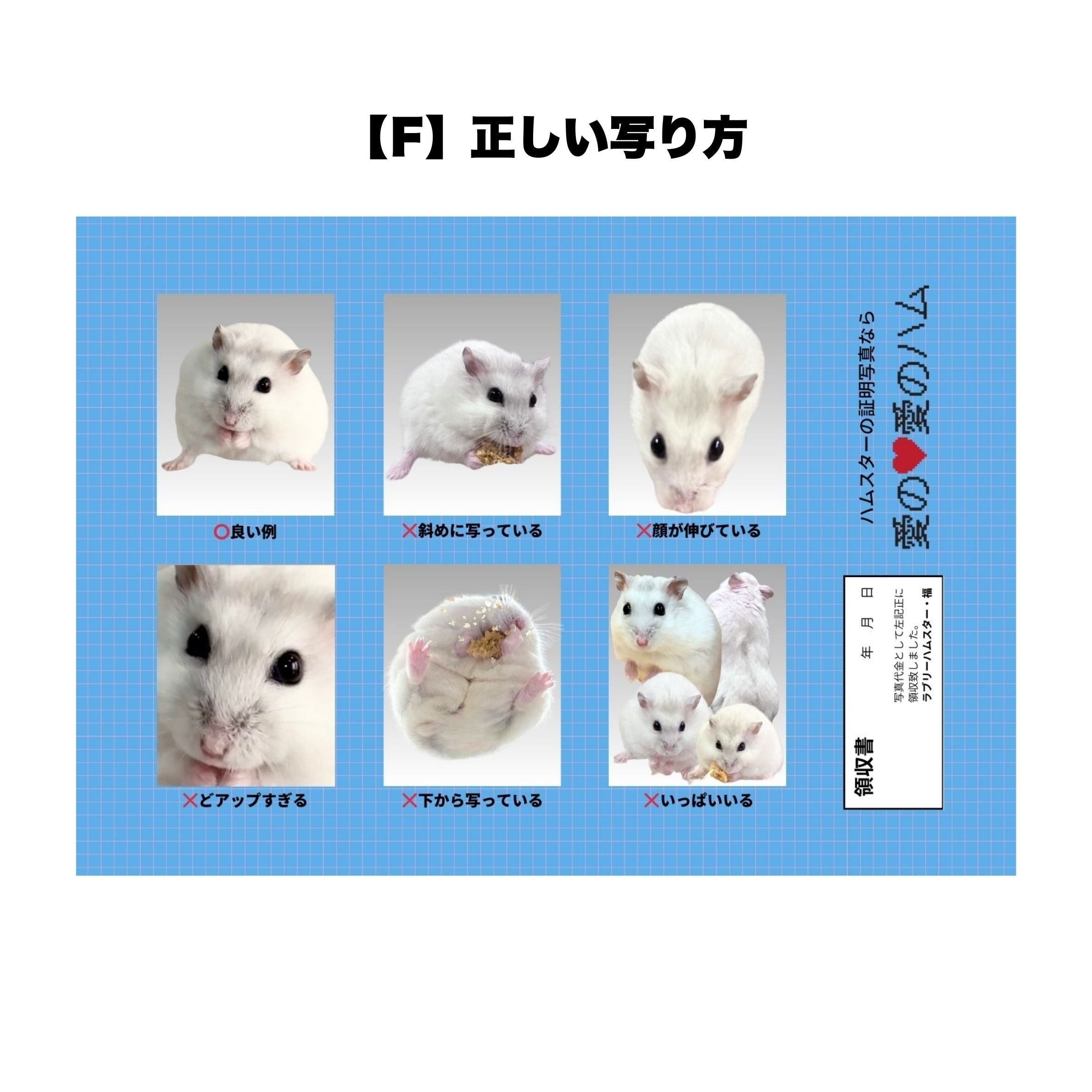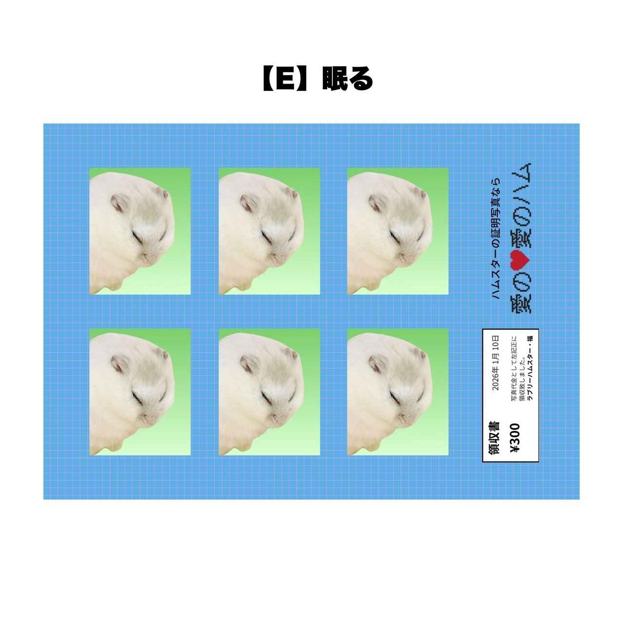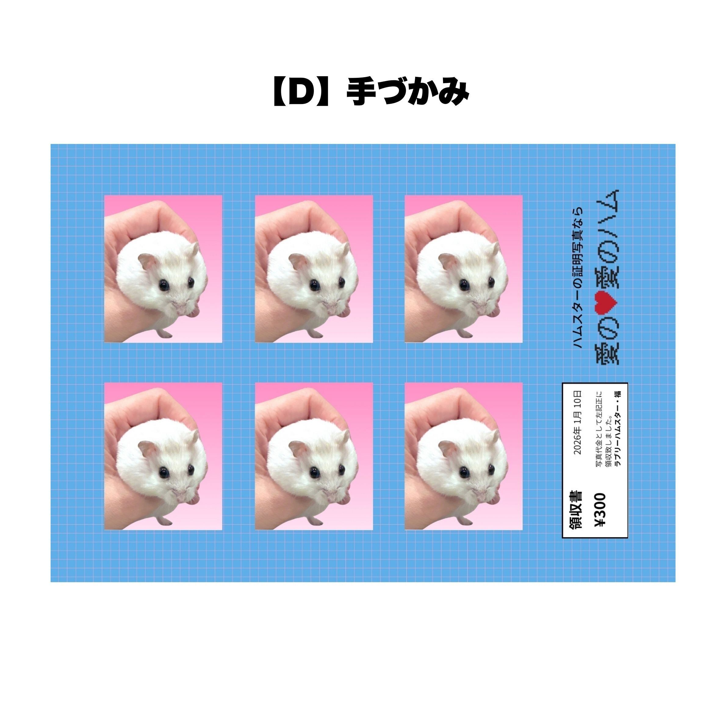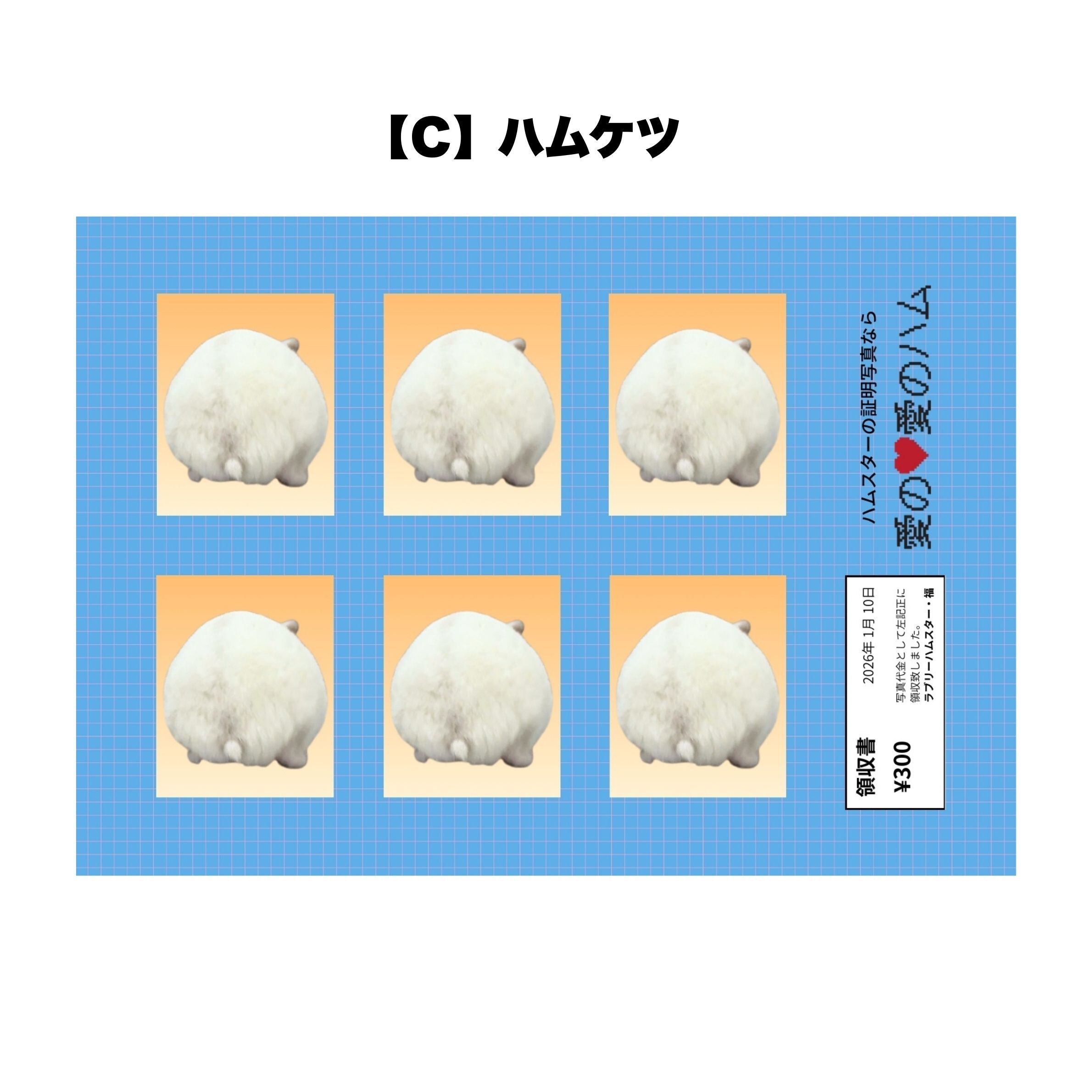 ラブリーハムスター福の証明写真風シールです。全6種類あります。カットするもよし、そのまま貼るもよし。L判サイズ。